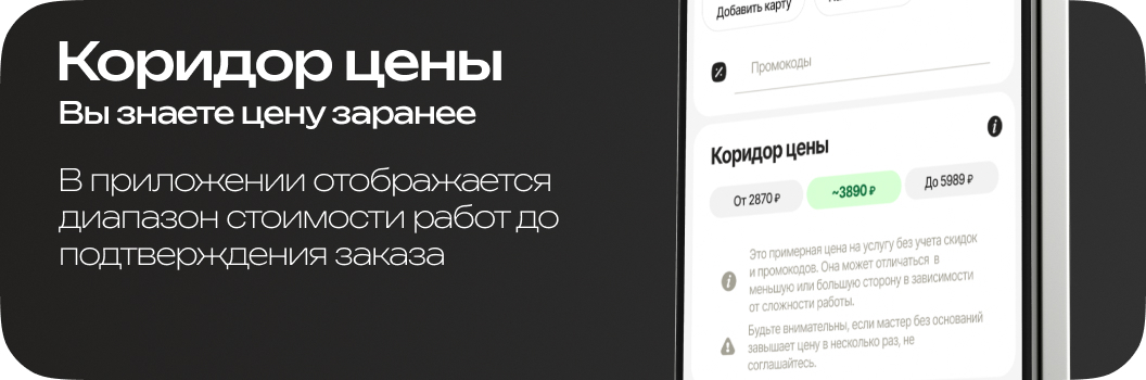 Знаете, приятно когда видишь стоимость ремонта от 1000 до 1300р, приезжает мастер и реально берет 1000р. Спасибо тому, кто реализовал "Коридор цены". Вот за это жирный лайк!